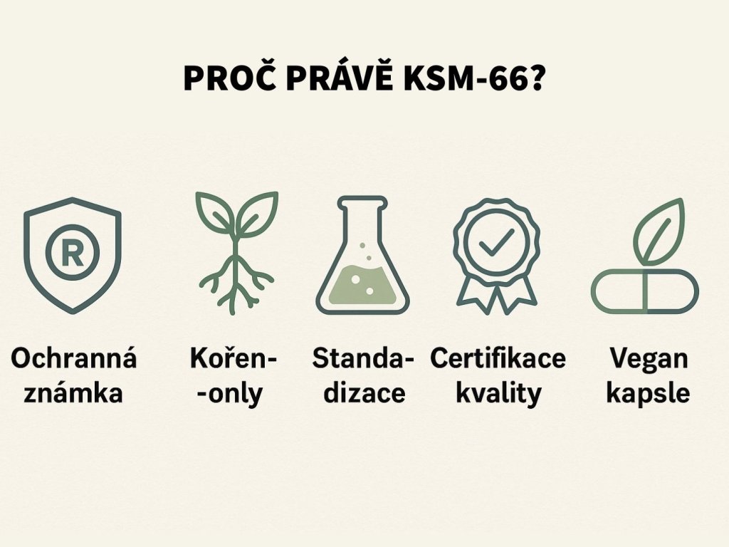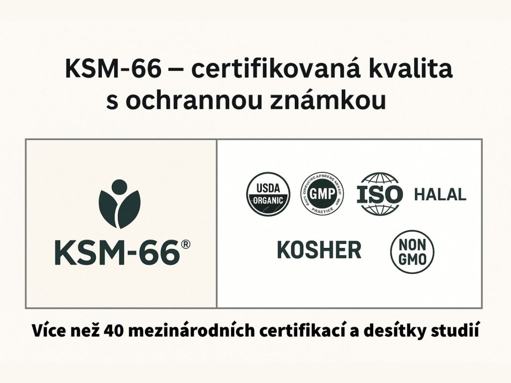 Ashwagandha KSM-66® – podpora duševní rovnováhy, spánku a vitality. Plnospektrální extrakt z kořene, čisté složení bez aditiv a veganské kapsle. Podporuje psychickou pohodu, soustředění i energii.
