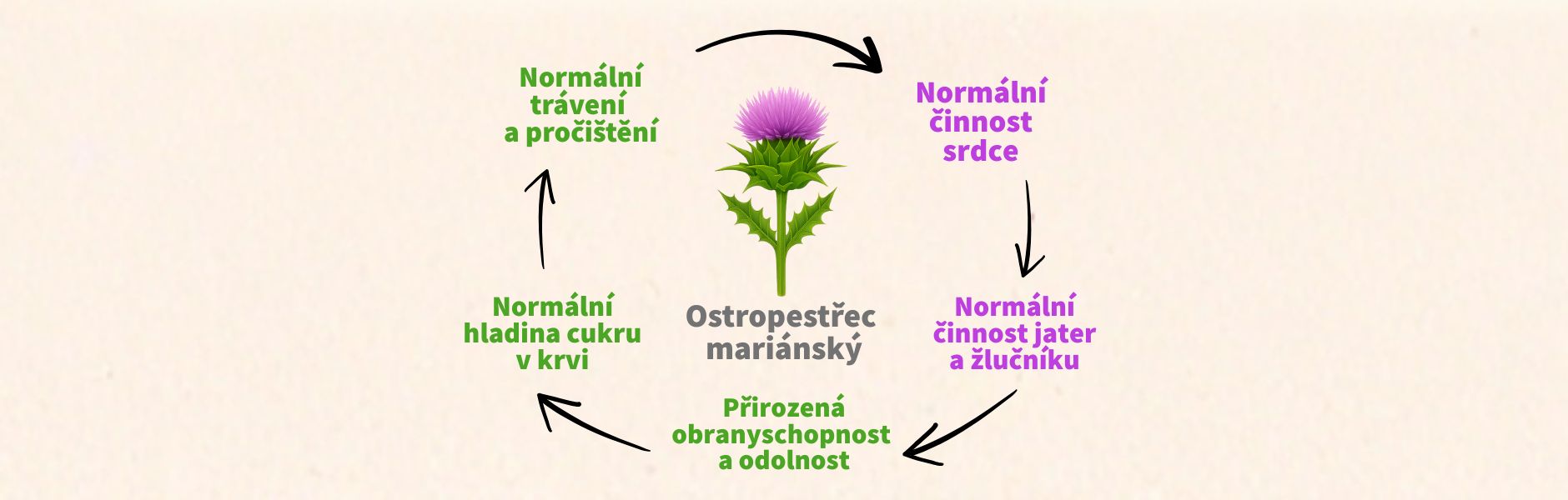 Ostropestřec mariánský je bylinou s bohatou historií a současně i s jasně definovanými účinky potvrzenými oficiálními zdravotními tvrzeními. Díky obsahu silymarinu přispívá k normální funkci jater a žlučníku, trávení, hladině cukru v krvi a zároveň působí jako antioxidant.