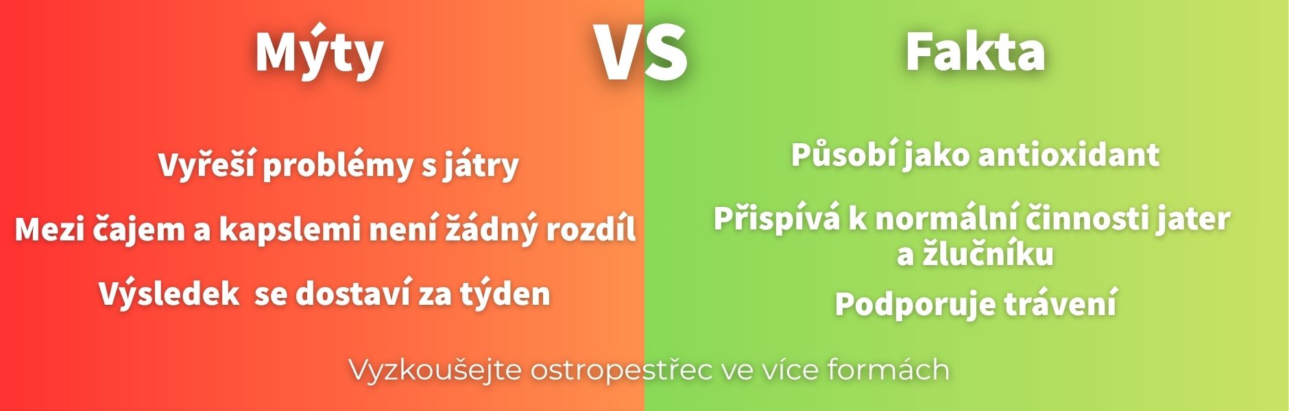 👉 Realita: Ostropestřec není lék, ale doplněk stravy. Obsahuje látku silymarin, která přispívá k normální činnosti jater a jejich pročištění.. - Mýtus č. 2: „Stačí týden a poznám rozdíl.“