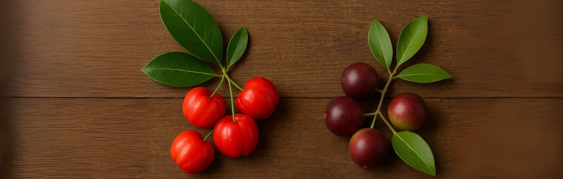 - 🍒 Acerola – patří mezi absolutní špičku, obsahuje až 30× více vitaminu C než pomeranč.