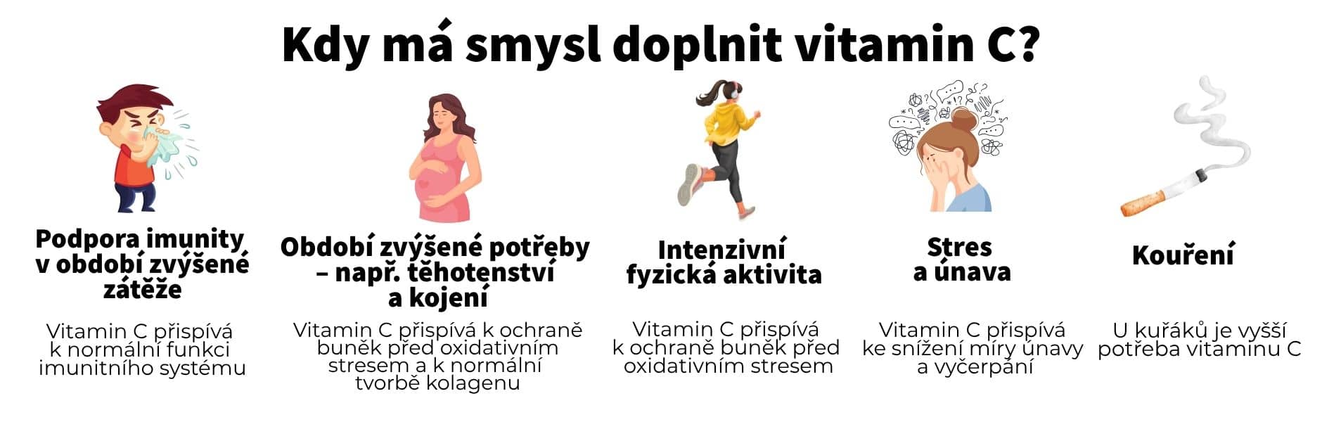 Pokud jíte pestrou stravu plnou ovoce a zeleniny, denní potřebu vitaminu C většinou pokryjete přirozeně. Jsou ale situace, kdy má suplementace vitaminu C smysl: