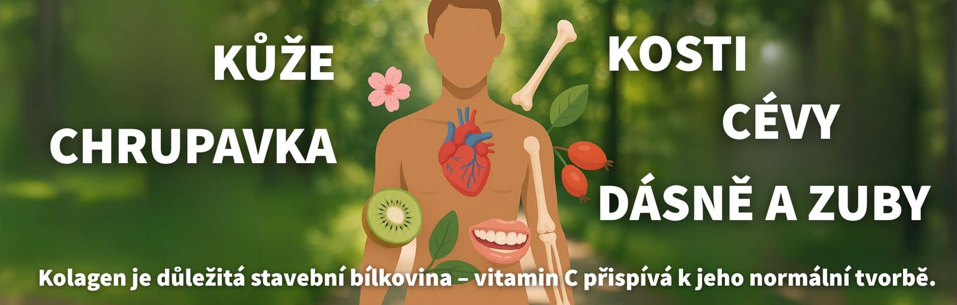 Vitamin C patří mezi nejznámější vitamíny – většina lidí si ho spojuje hlavně s podporou imunity. Méně už se ale ví, že má naprosto zásadní roli i při tvorbě kolagenu – bílkoviny, která tvoří „lešení“ našeho těla. Bez dostatku vitaminu C se kolagen nevytváří správně a to se může projevit na normální funkci kůže, cév, kostí, chrupavek i zubů.