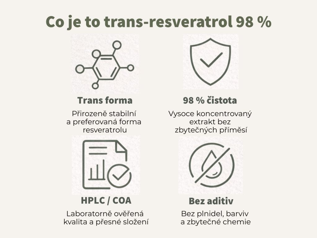 - 💎 Prémiová čistota – 98 % trans-resveratrol