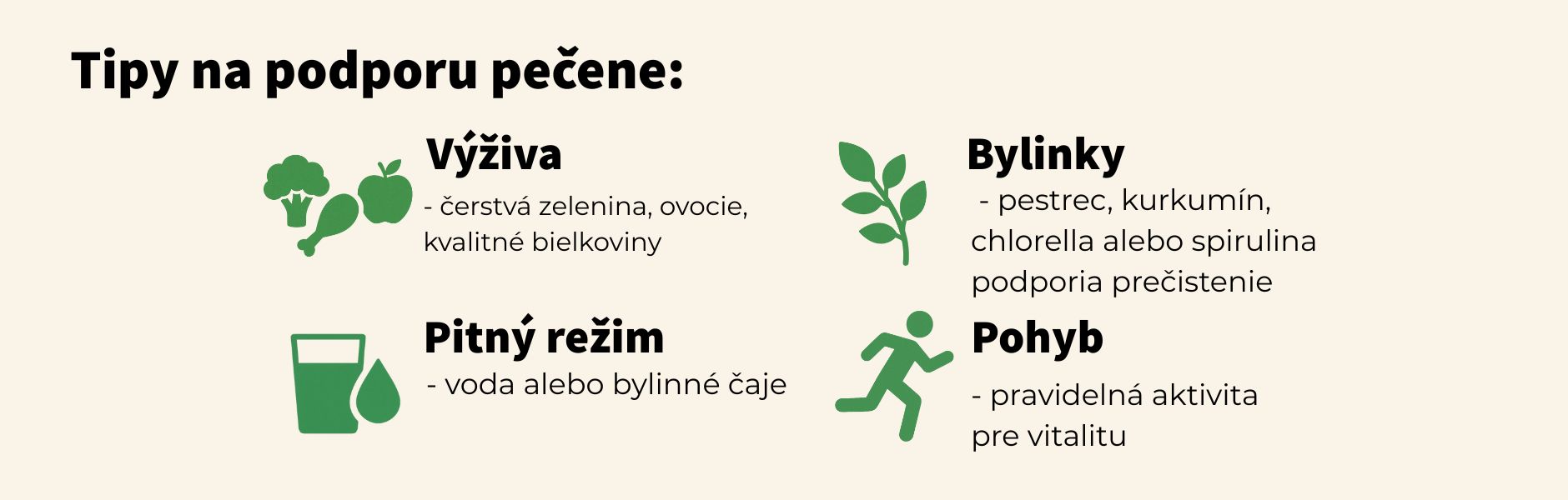- Pitný režim – čistá voda a bylinné čaje podporujú prirodzené procesy v tele. Dostatočný príjem tekutín je pre pečeň rovnako dôležitý ako pre ostatné orgány.