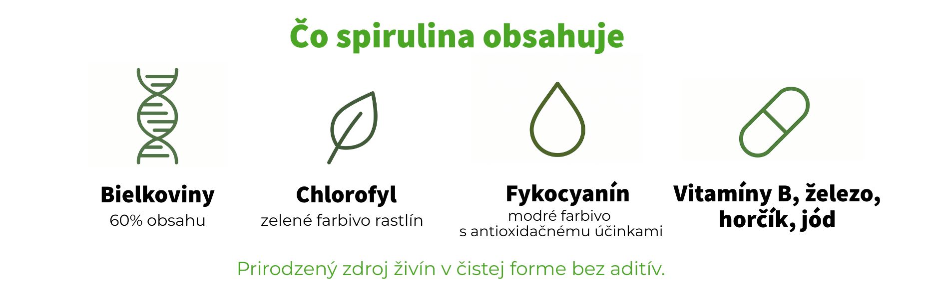 - ✅ Bielkoviny – Spirulinu tvorí viac než 60 % kvalitných rastlinných proteínov, ktoré obsahujú všetky esenciálne aminokyseliny.