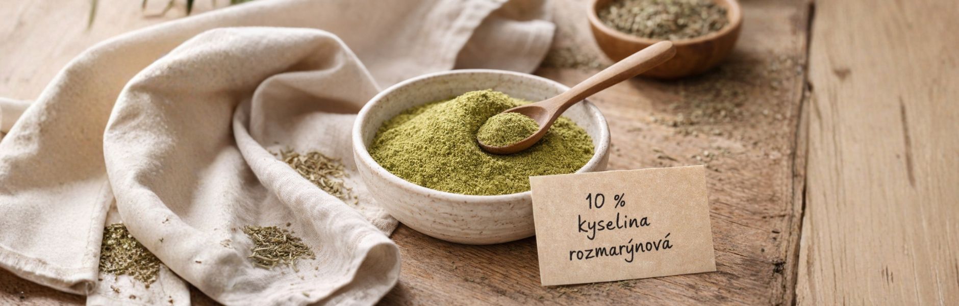 - extrakt z rozmarínu môže byť štandardizovaný na 10 % kyseliny rozmarínovej