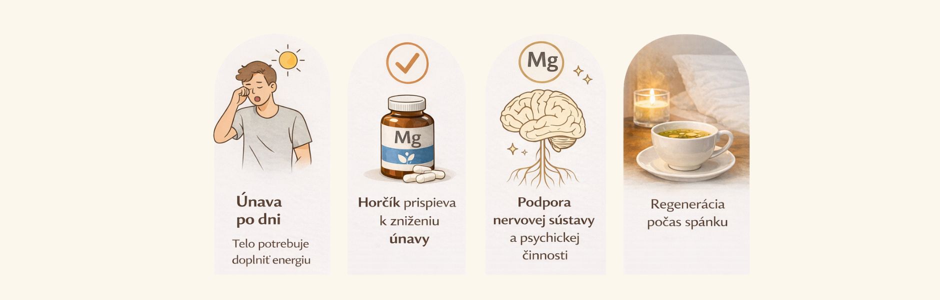 Jednou z možností, ako telu večer dopriať podporu, je horčík – minerál, ktorý prispieva k normálnej činnosti nervovej sústavy, psychickej činnosti a k zníženiu miery únavy a vyčerpania.