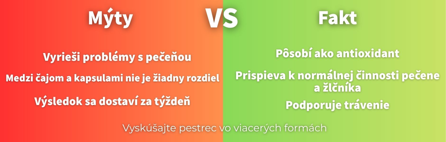 👉 Realita: Účinky sa prejavia až pri dlhodobom a pravidelnom užívaní. Pečeň potrebuje čas na obnovu a regeneráciu. - Mýtus č. 3: „Čaj má rovnakú silu ako kapsuly.“