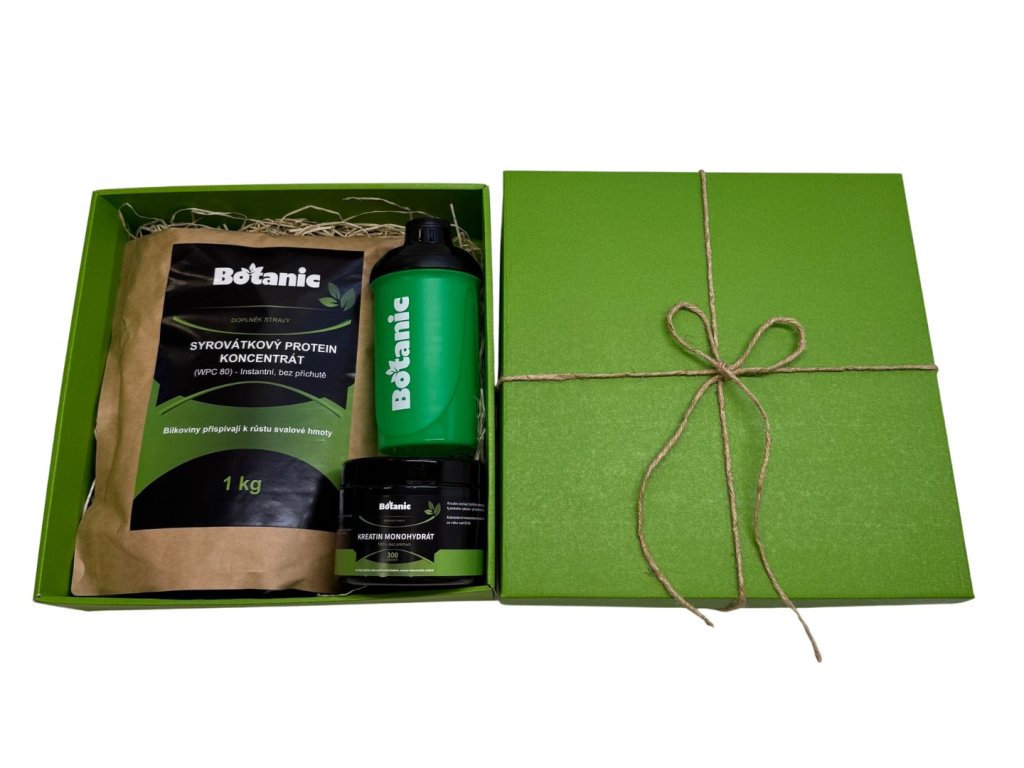 Darčekový balíček pre športovcov, ktorí chcú posúvať svoje limity. Obsahuje proteín, kreatín a shaker – základnú výbavu každého, kto maká na svojom tele. Prakticky zabalené a pripravené na odovzdanie bez starostí.